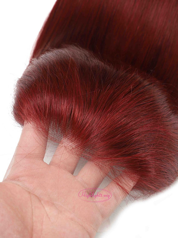 99j color Straight 10A Human Hair Transparent 13×4 Lace Frontal Wig